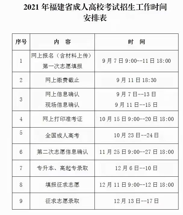 福建省2021年成人高考成绩将于11月18日发布。请相关考生凭账号、密码登录省教育考试院网站(www.eeafj.cn)“数字服务大厅-成考成招-网上报名系统(考生登录)”栏目查询。请考生获知成绩后,于11月25日-27日上网进行志愿确认。
