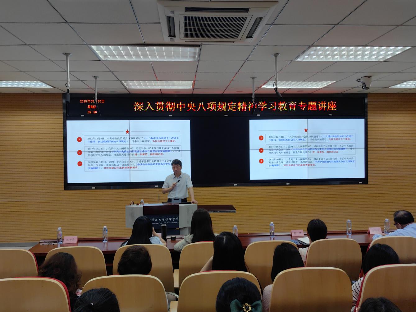 校纪委副书记、纪委(监察专员办)综合室主任,校党委巡察办主任张开泰作《深入贯彻中央八项规定精神持之以恒抓实作风建设》专题讲座。讲座系统阐述了习近平总书记关于加强党的作风建设的重要论述,总结了贯彻落实中央八项规定精神、纠治“四风”的取得成效、总体态势和突出问题,就推动落实中央八项规定精神、纠治“四风”常态长效提出了明确要求和切实可行的建议。