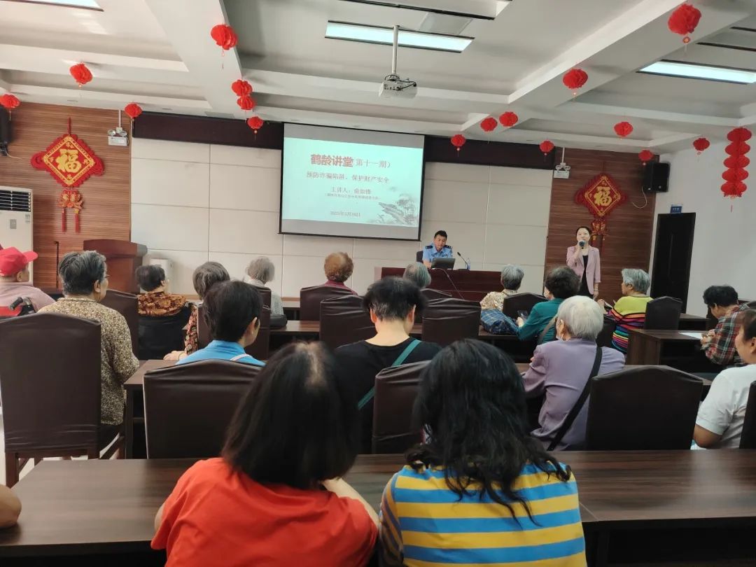为切实增强我校离退休老同志的金融安全意识,有效防范电信诈骗风险,2025年5月16日上午,离退休干部工作处联合福州市台江区上海街道河上社区,在我校老干部活动中心多功能厅组织开展以“预防诈骗陷阱,保护财产安全”为主题的“鹤龄讲堂”第十一期活动。