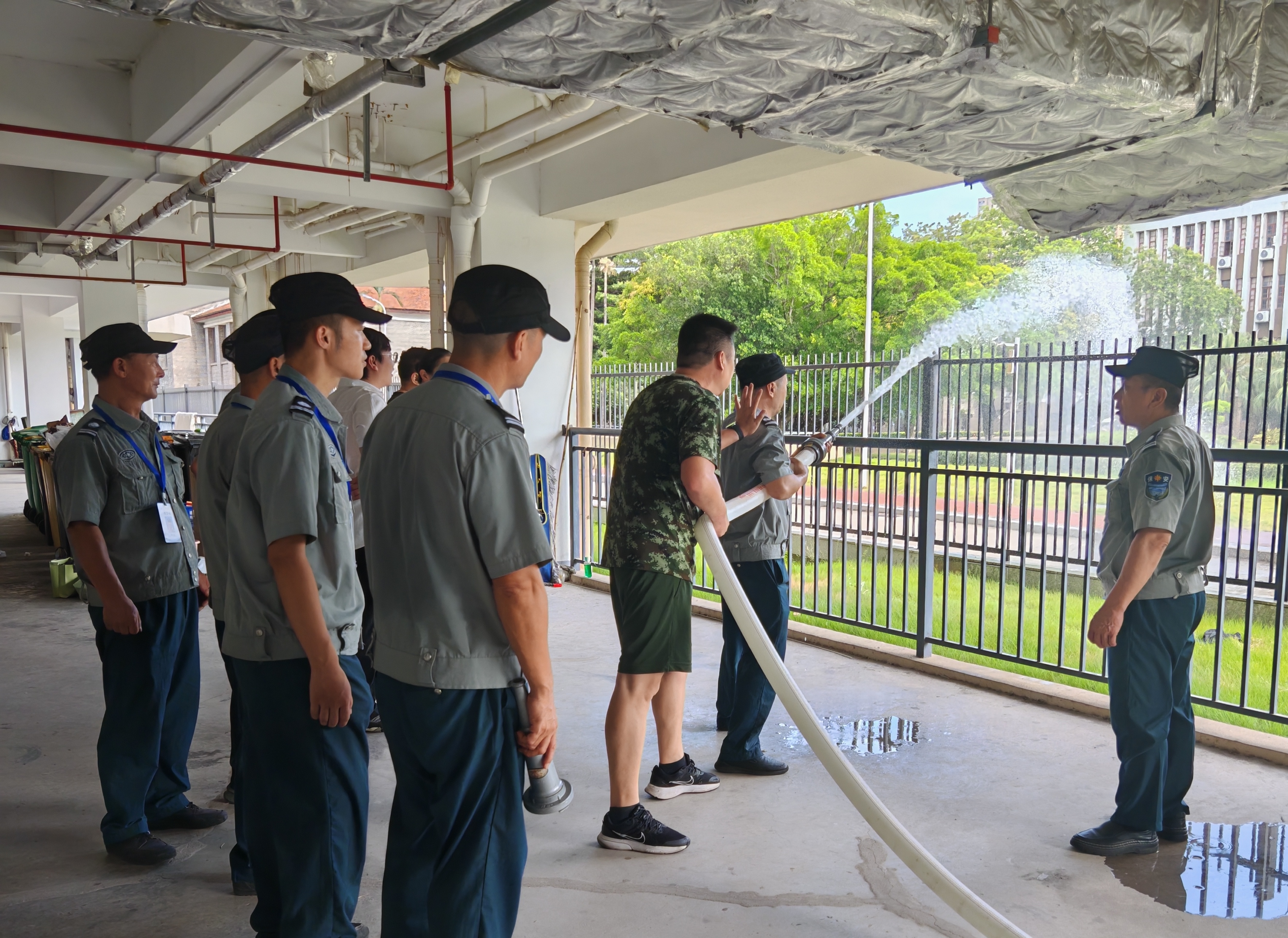 邀请消防专家对保安员(消控员)进行消防技能培训,内容涵盖灭火器与消防栓使用技巧、消防服穿戴和消防水带战术收整等常见消防器材的操作使用方法,以及火灾扑救要领、火场疏散逃生方法等重点内容。