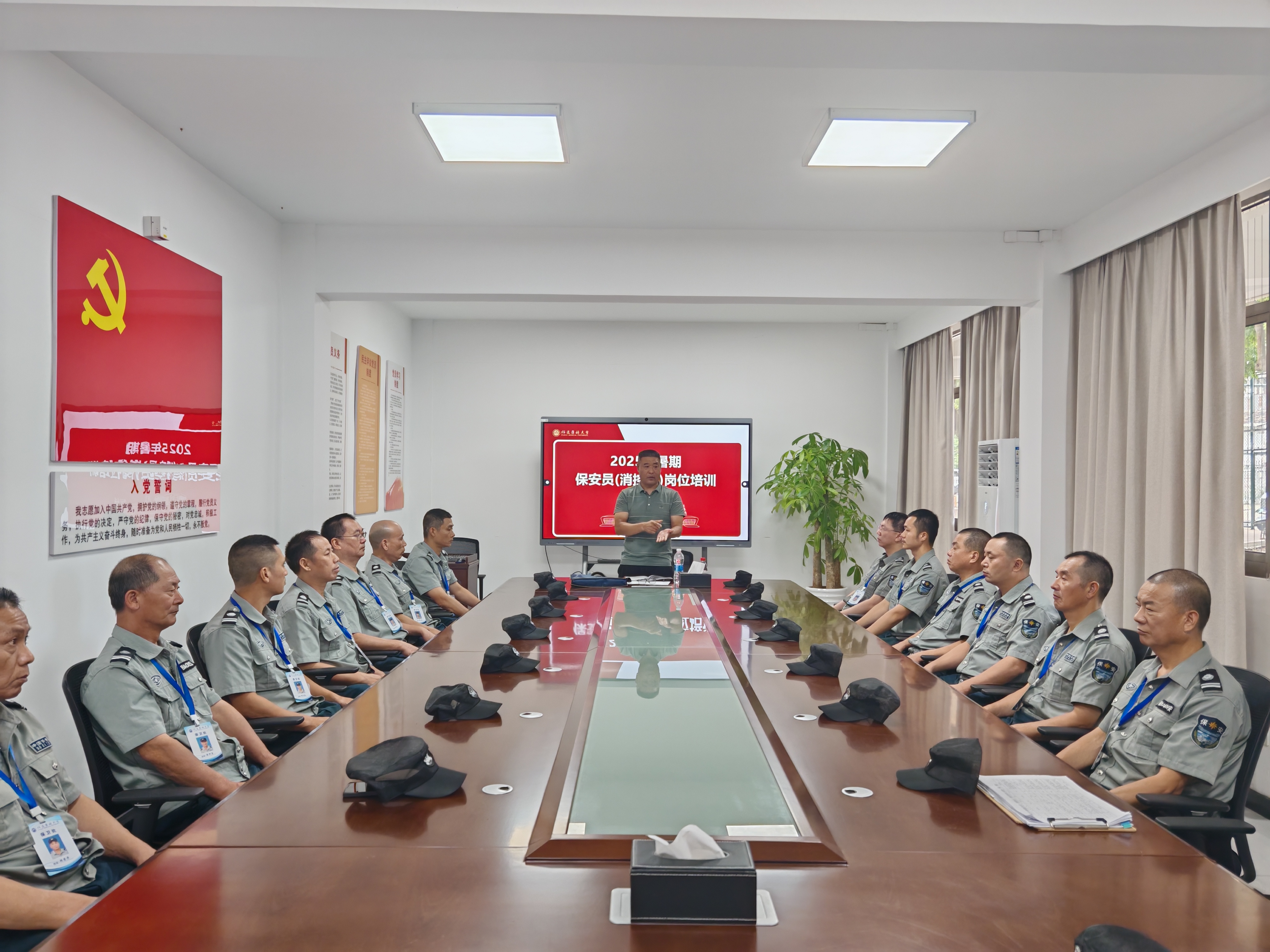 为提升校园安全保卫水平,强化保安员、消控员业务能力与应急处突素质,8月23日至27日,保卫处组织开展了两期保安员(消控员)暑期岗位培训,培训对象覆盖全体在岗及新入职人员。本次培训以提升专业技能和应急处突能力为主要目标,保卫处副处长钟小梅、王剑峰分别作开训动员。